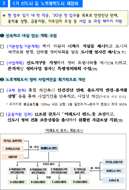 3기 신도시 등 공공택지 이부분은 왼쪽 사진 맨 아래 보시면 '3기 신도시별 추진계획' 이라고 쓰여져 있는데 이걸 24년에 빨리 진행시키겠다~